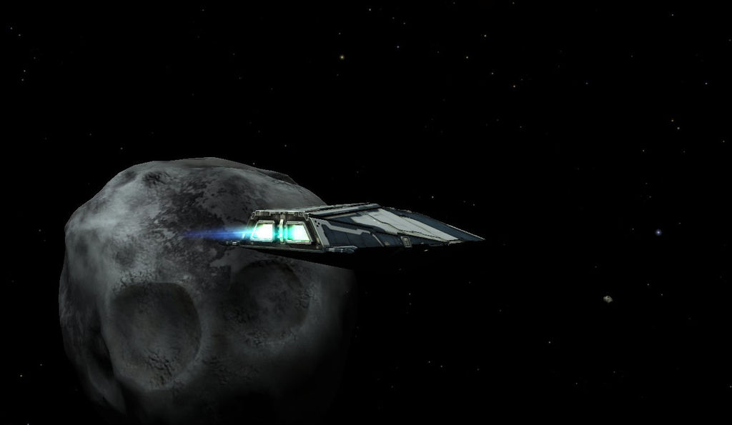 No shader screenshot - Ophidian cruising past some asteroids